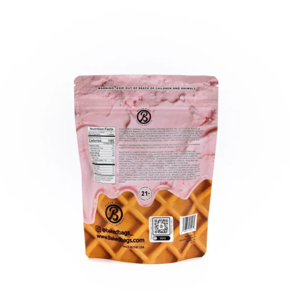 Erleben Sie den ultimativen Genuss mit Baked Bags Coned Strawberry Shortcake, einem köstlichen Delta-8 THC-Infused-Edible. Jeder Biss bietet eine harmonische Kombination aus süßen Erdbeeren und cremigem Shortcake, verpackt in einer knusprigen Mini-Waffel mit reichhaltiger Delta-8-Schokolade.